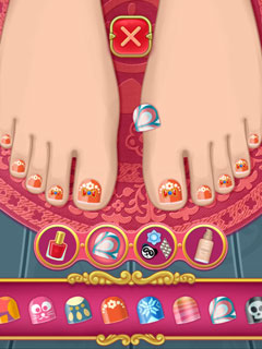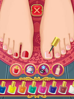 Help Anna run her pedicure salon in this fun makeover game! Anna’s Pedicure is not only one of the best makeover games but it also features Anna. Follow the in-game instructions to give Anna’s customer the best pedicure ever. Removing the old nail polish, clipping and trimming the nails then applying hand lotion are all part of this exciting and educational game. With this preparation in place, you can now create your own nail design and choose from a wide range of different colors, patterns and even apply beautiful accessories like diamonds to the nails. Create as many designs as you want and show your friends your wonderful sense of style! Play Anna’s Pedicure now for free and experience one of the best makeover games!