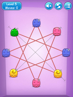 Be Happy is the free, online puzzle game where everything revolves around cute smiley’s and how to make them happy again. The smiley’s are connected with each other and sometimes these links are crossed, which makes the poor little things sad. You have to drag the smiley’s around, to uncross the lines and make everyone happy! Sometimes the smiley’s are tied to lines, sometimes they are tied to circles, while others can be moved freely. Just uncross all the lines and all sadness will be gone! If only making real people smile and be happy were such a simple matter…Now have fun and play Be Happy for free!