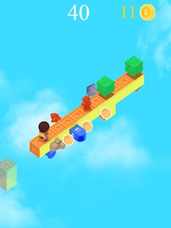 The Street is an awesome casual arcade game with fantastic 3D graphics. The game will test your patience and ability of quick-paced thinking while having to avoid obstacles on a course. As soon as you see an obstacle in front you have to click to rotate the street, in order to avoid it – or fall to your doom, it all depends on your reaction time. You control one of several acquirable avatars, and walk him through the thin street of blocks forming in front of him. Don’t forget to collect coins in your way, as this will allow you to buy more live and to keep going after making a mistake. Avoid the obstacles and unlock new cool looking 3D avatars. Play The Street now for free!